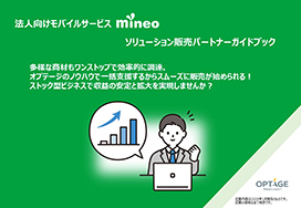 mineo法人 ソリューション販売パートナーガイドブックの詳細内容やお手続き方法を掲載しております。社内説明などにもご利用ください。
