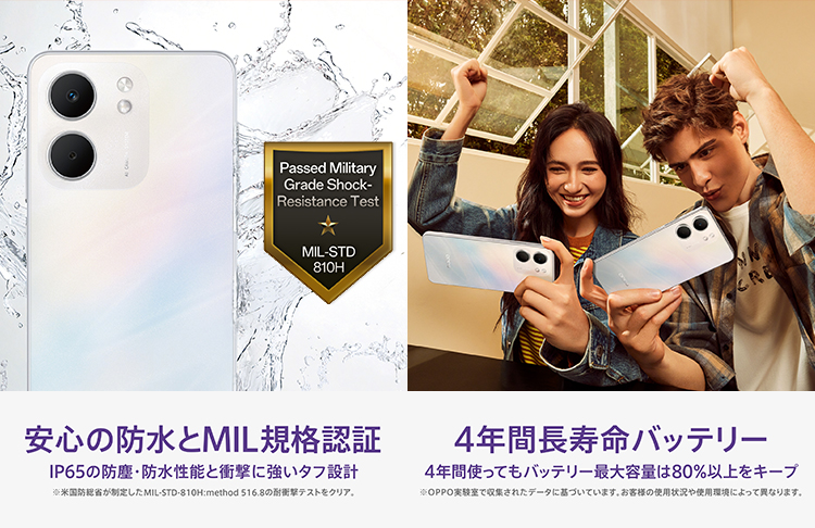 ※2 OPPO実験室で収集されたデータに基づいています。お客さまの使用状況や使用環境によって異なります。